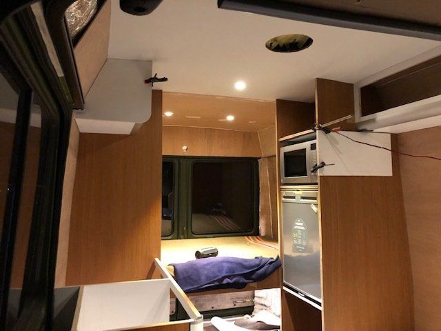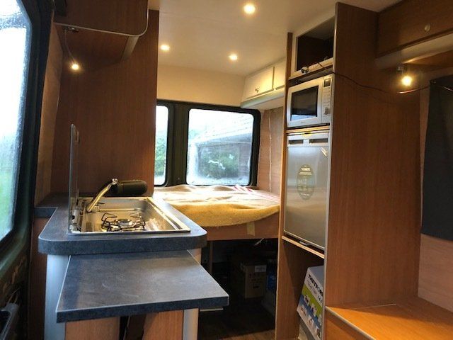 Deze legerambulance is door ons omgebouwd naar een luxe camper die van alle gemakken is voorzien, 2x PV paneel met Multi omvormer, boiler, standkachel, uitschuifbaar toilet, schoonwater tank, draaibare bijrijdersstoel, koelkast, oven en veel led verlichting
